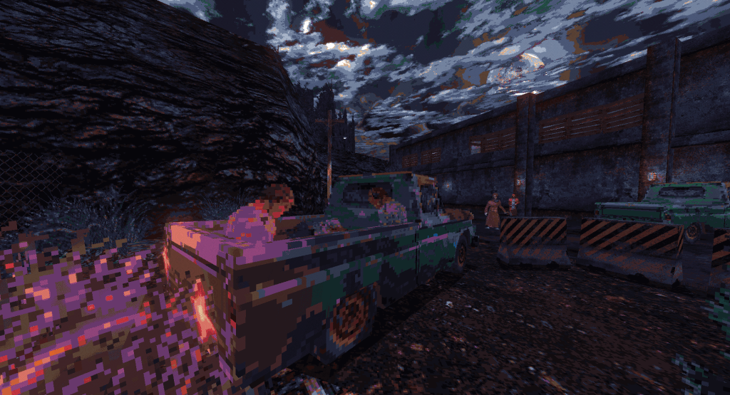 While the action is relentless, the atmosphere is what truly sets Cultic apart. The game has a unique aesthetic that blends lo-fi, deliberately blocky environments with detailed high-resolution sprites and particles. This style creates a persistent sense of dread and mystery, where the world feels like a broken rural landscape.